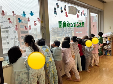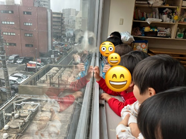 保育ブログblog 2026.1.21 ゆーきや こんこ⛄ 午睡前に、一斉に窓辺へ集まる子ども達。 見た景色とは………?👀 今年初雪❄ ヒラヒラと雪が舞っている様子に大興奮っっ👀✨ 「みんな、すごいよっ❢❢」 「こんなに雪が降るなんでびっくりしちゃうね😶」 「積もるかな?雪だるま作りたーい⛄」 雪が降る様子に釘付けな子どもを横に、聞こえてくるあの歌は👂❓ 今月の歌でも歌っている『ゆき』でした🎶 手拍子をしながら友達と一緒に楽しんで歌っていましたよ👏 前の記事 一覧に戻る